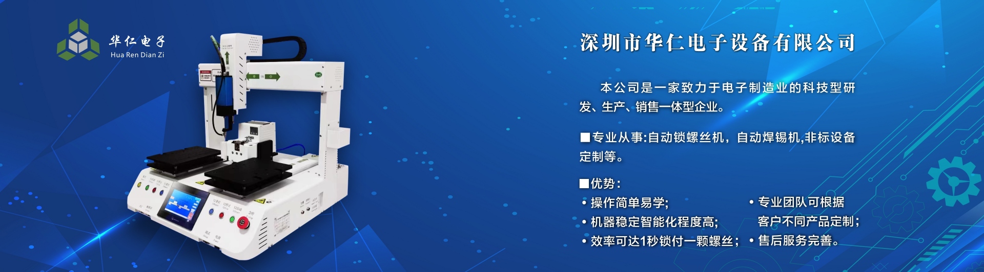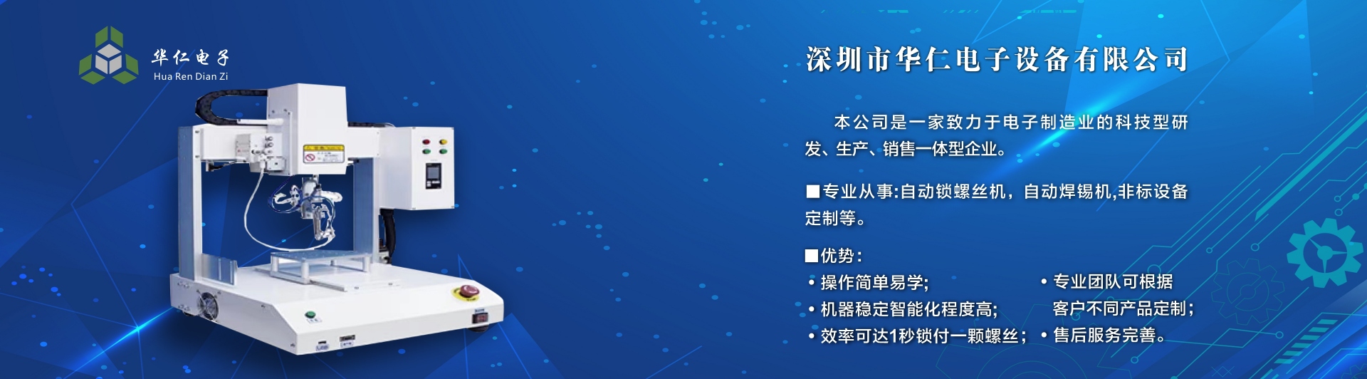深圳市華仁電子設(shè)備有限公司是一家致力于電子制造業(yè)周邊設(shè)備的科技型研發(fā)、生產(chǎn)、銷售一體的企業(yè),專業(yè)從事:自動鎖螺絲機(jī);自動焊錫機(jī);非標(biāo)設(shè)備定制機(jī)等,公司長期以來在行業(yè)中積累了豐富的經(jīng)驗,擁有專業(yè)的研發(fā)、技術(shù)、銷售支持工程團(tuán)隊、各高級技術(shù)人才為客戶提供優(yōu)質(zhì)產(chǎn)品和服務(wù),同時不斷吸取國內(nèi)外先進(jìn)技術(shù),更準(zhǔn)確及時地為客戶提供優(yōu)質(zhì),性價比高的產(chǎn)品、公司以專業(yè)的售前、售中、售后服務(wù)贏得了客戶的信賴和好評,為客戶提供先進(jìn)自動化設(shè)備一體式解決方案、